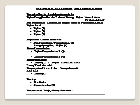 PELAJARAN III :  STANDART OPERATION PROSEDURE (SOP) GJKI MILLENIUM DAMAI
